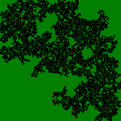 Nous abordons le problème sous l'angle d'une simulation de feu de forêt, bien que le programme soit capable de simuler une grande diversité de comportements.