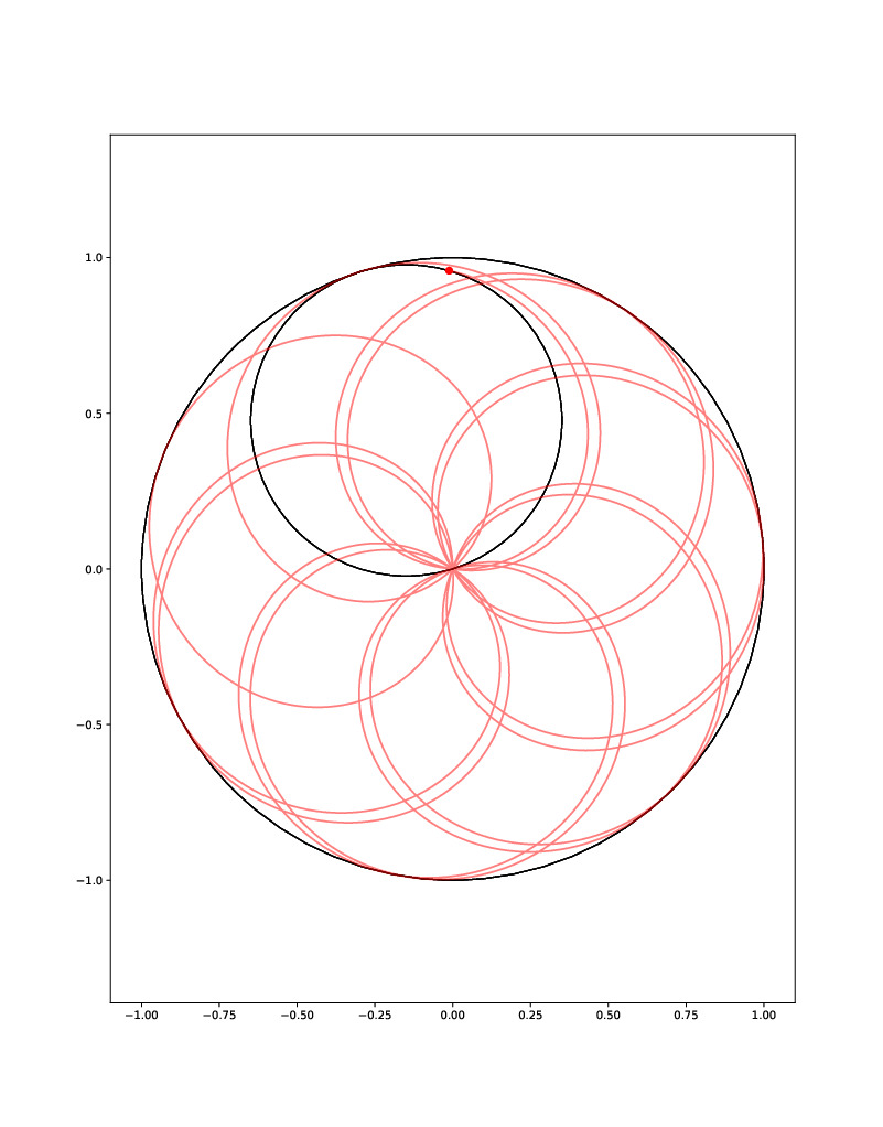 Ces courbes sont générées par le roulement sans glissement d'un cercle dans un autre, ce qui donne un bon prétexte pour utiliser les capacités d'animation du module Matplotlib.